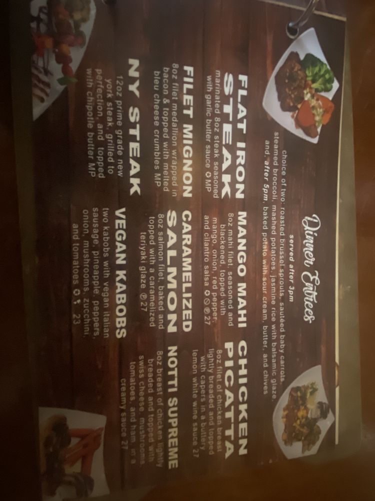 Nottinghams Tavern in Big Bear Lake offers a diverse menu featuring salads, American cuisine, and burgers. The restaurant provides a range of amenities including delivery, takeout, vegan options, and wheelchair accessibility. Customers can enjoy their meals in a casual setting with options for outdoor seating. Whether dining in or taking advantage of the drive-thru, guests can expect a range of appetizers like Ahi, Pretzel Bites, Duck Wings, and Caramelized Brie. Main dishes include Basil Chicken, Salmon, NY Steak, and Filet Mignon, among others. The prime rib special on select days is a highlight, with grilled and blackened options topped with lobster or shrimp. Positive customer reviews highlight the friendly service, cozy ambiance, and variety of options on the menu. Overall, Nottinghams Tavern is a great spot for a satisfying meal in a relaxed atmosphere.